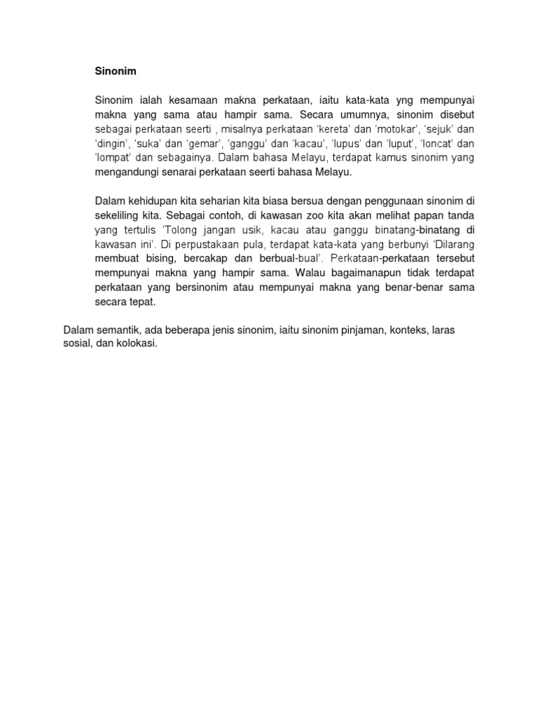 contoh sinonim bahasa melayu